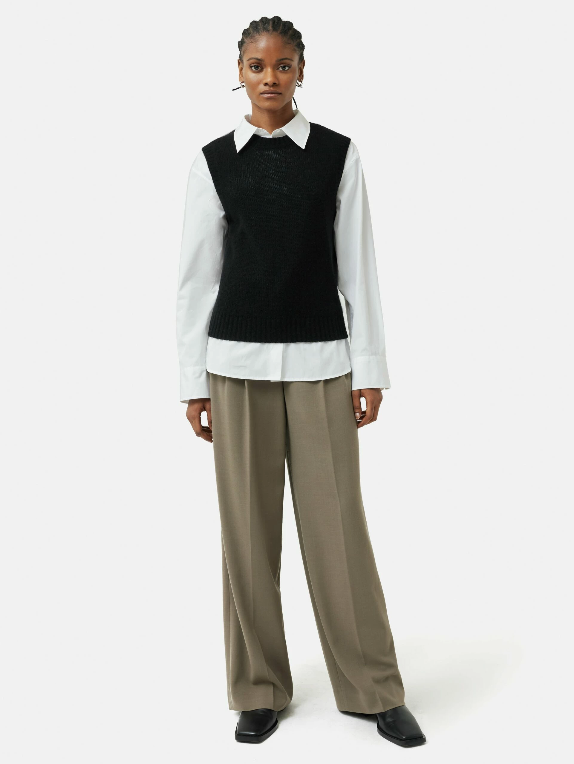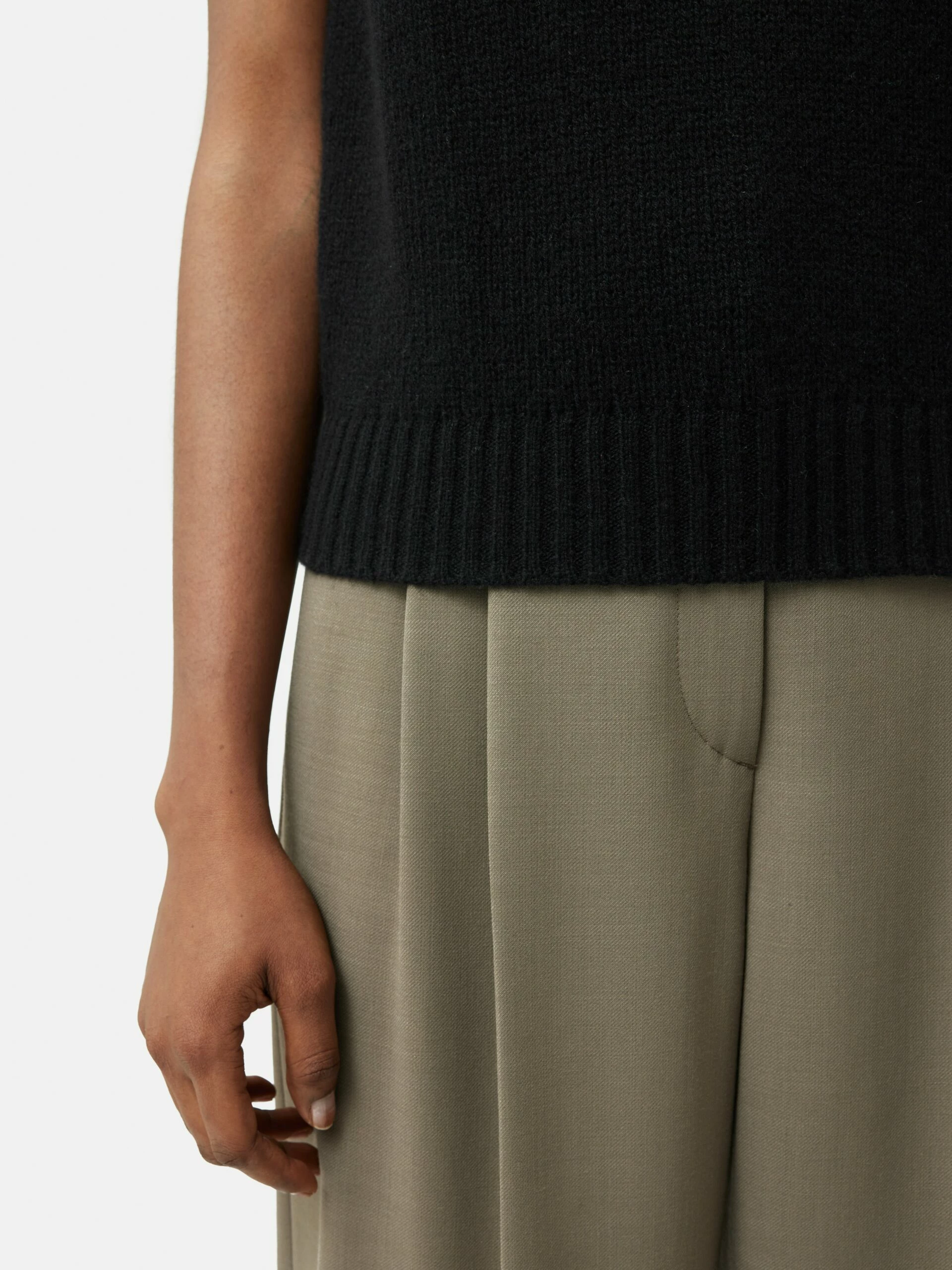 Our best-selling tank arrives in a new fabrication this Autumn: fully traceable Mongolian cashmere sourced from one of the worlds leading cashmere spinners. High crew neckline shape with a deep ribbed hem. Perfect for layering over a shirt or printed dress, or simply wear alone with high waisted trousers. This versatile piece promises endless wardrobe combinations.