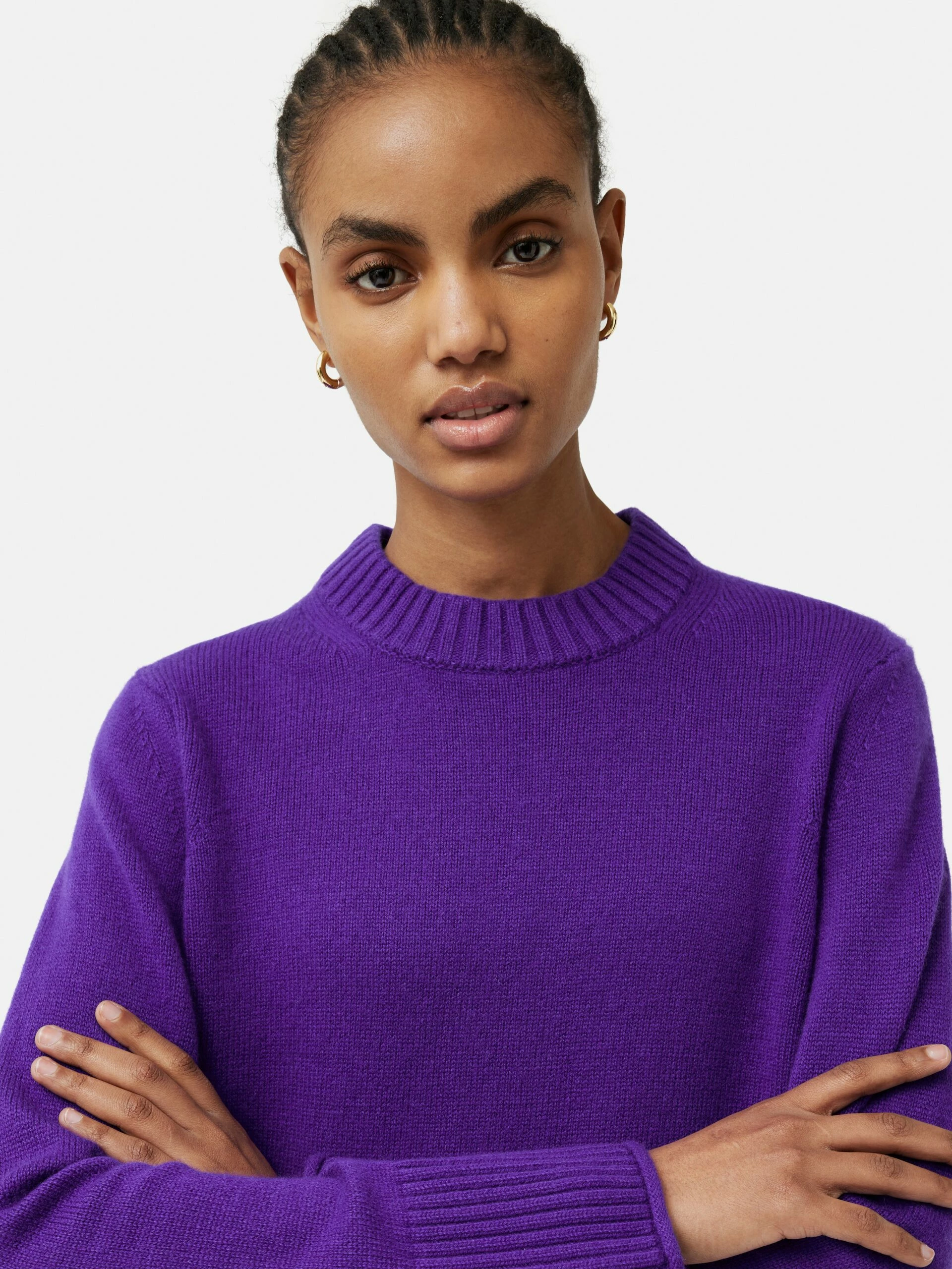 SKU: AMLNC 1703899158 Categories: Clothing, Knitwear & Cashmere Tags: Badge: NEW TO SALE, Budget_group:1017, Category:Jumpers, Category:KNITWEAR, Collection:all-sale-womens, Collection:knitwear, Collection:sale-knitwear, Collection:see-all-womenswear, Collection:staff-discount, Default_prod_id:J46617, Discount_filter:Up to 30%, Discount_percent:20, Display_text_id:1017J46617, Id:J46617_PU000, Markdown:1, Master_colour:Purple, Newness:20230726, Range:WOMEN, Shop_the_look: T, Swatch_image:J46617_PU000_swatch.jpg, Type:Long Sleeve, Type:Wool, Variant_season:2302, Variant_status:REDUCED