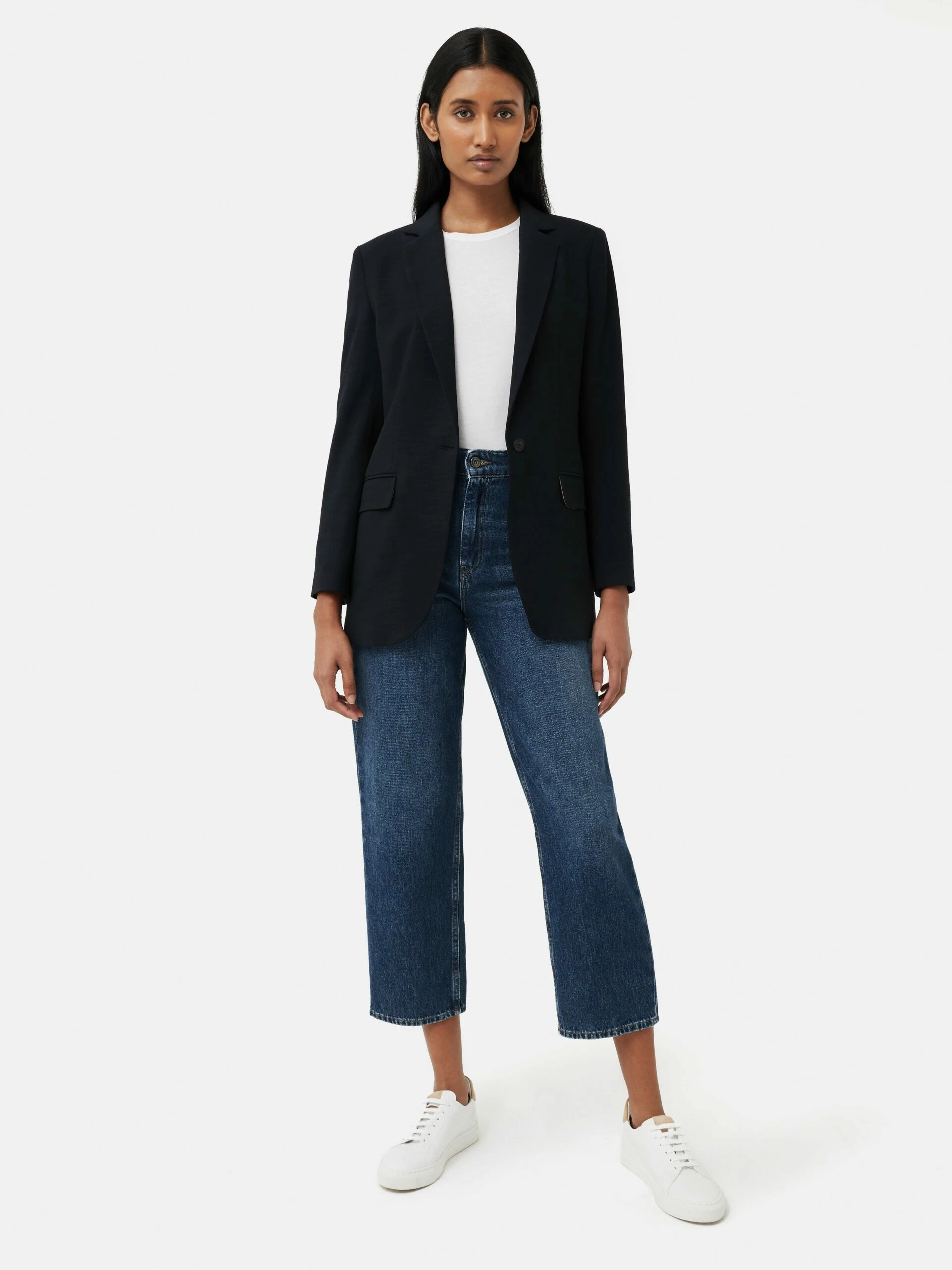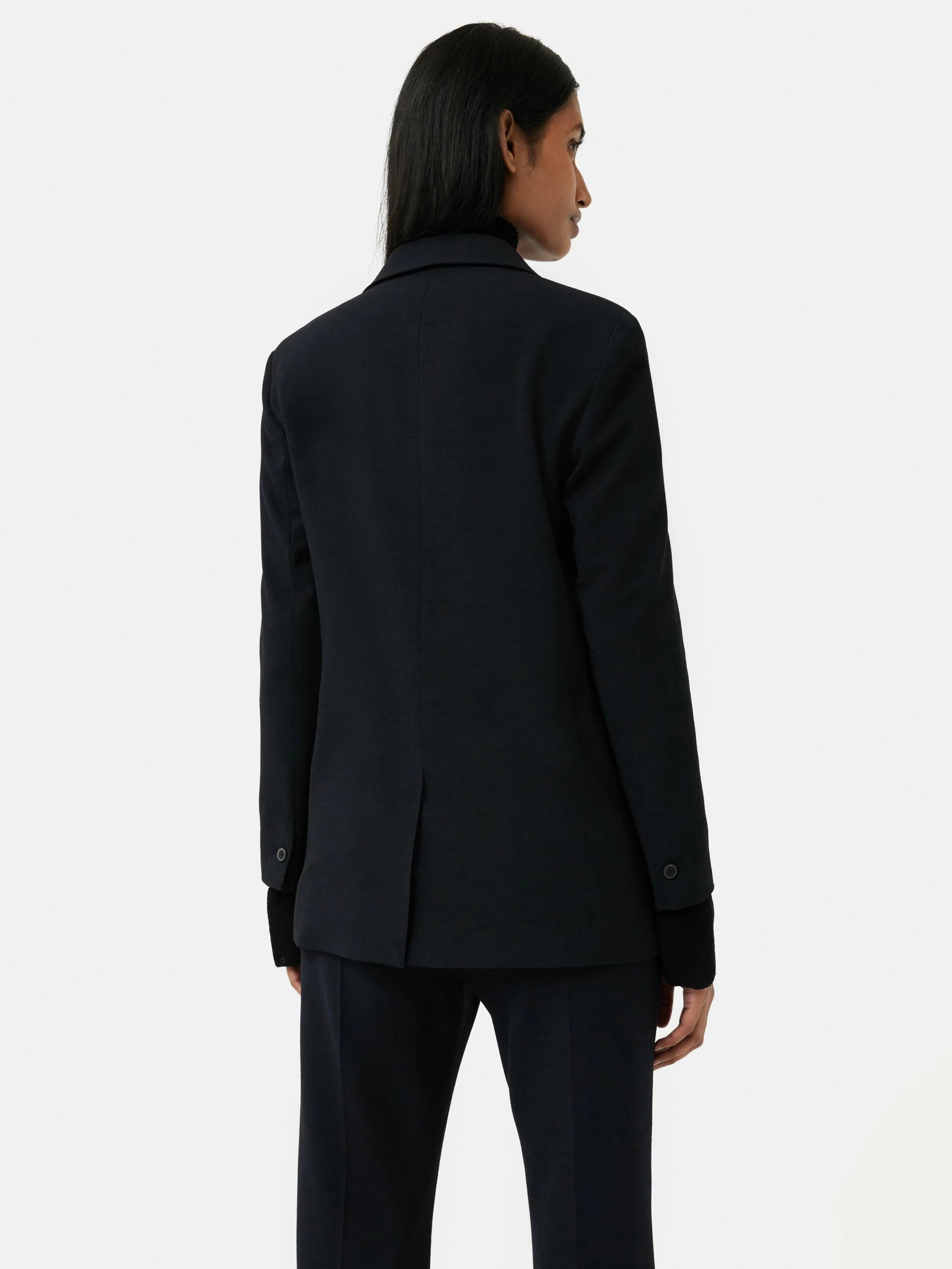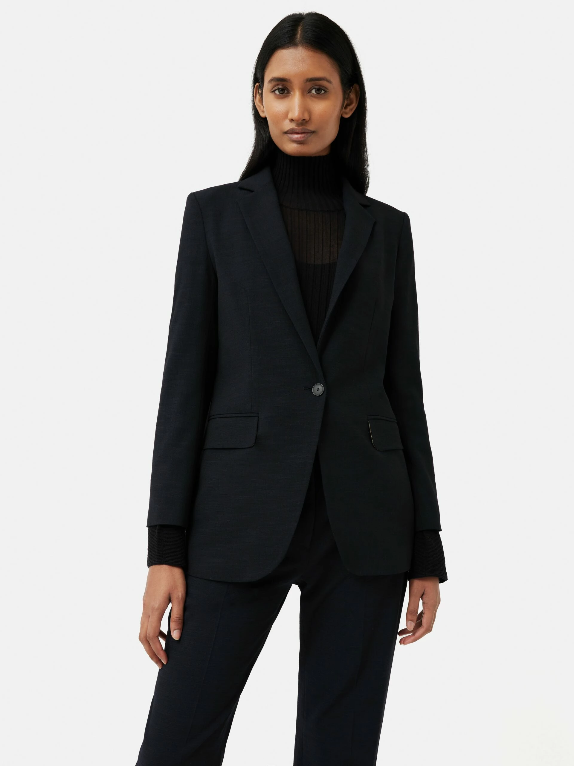 SKU: AMLNC 1703899107 Categories: Clothing, Tailoring Tags: Badge: MATCHING SET, Budget_group:1020, Category:JACKET, Collection:blazers, Collection:coats-jackets, Collection:full-price-hidden, Collection:modern-classics, Collection:modern-tailoring, Collection:occasionwear, Collection:responsible-edit, Collection:see-all-womenswear, Collection:staff-discount, Collection:suits, Collection:work-wear, Default_prod_id:J48108, Display_text_id:1020J48108, Id:J48108_BL010, Markdown:0, Master_colour:Blue, Newness:20230817, Range:WOMEN, Shop_the_look: T, Swatch_image:J48108_BL010_swatch.jpg, Type:blazer, Type:viscose, Variant_season:2302, Variant_status:CURRENT