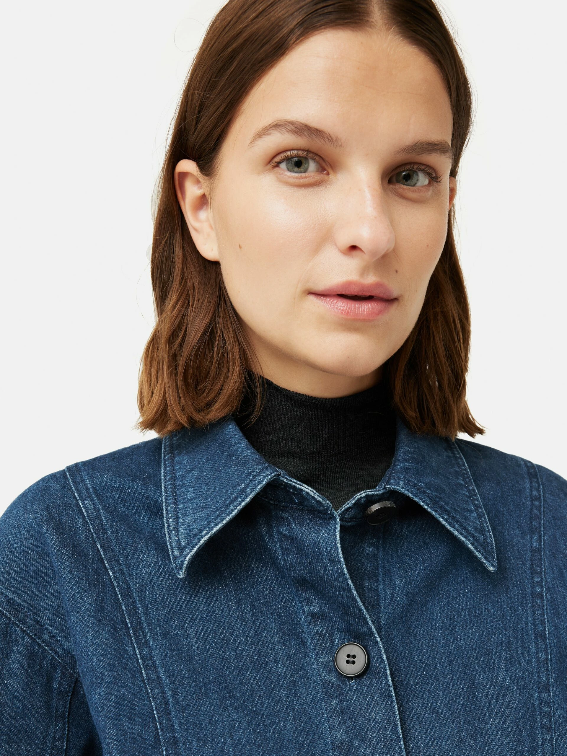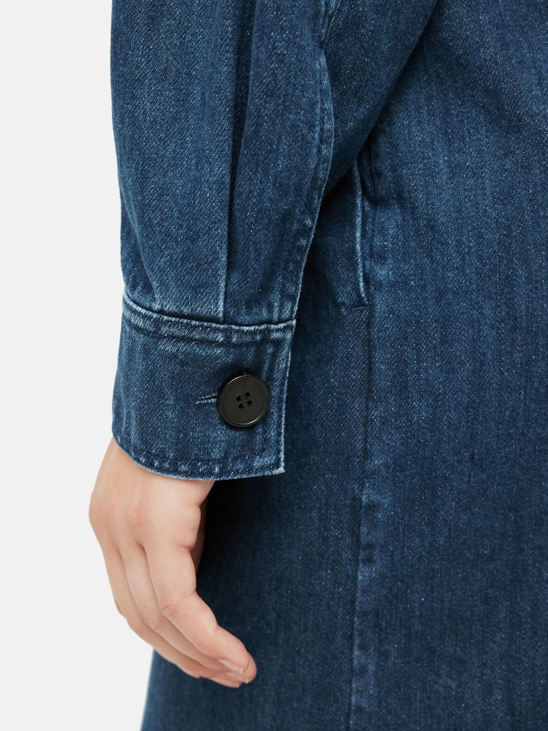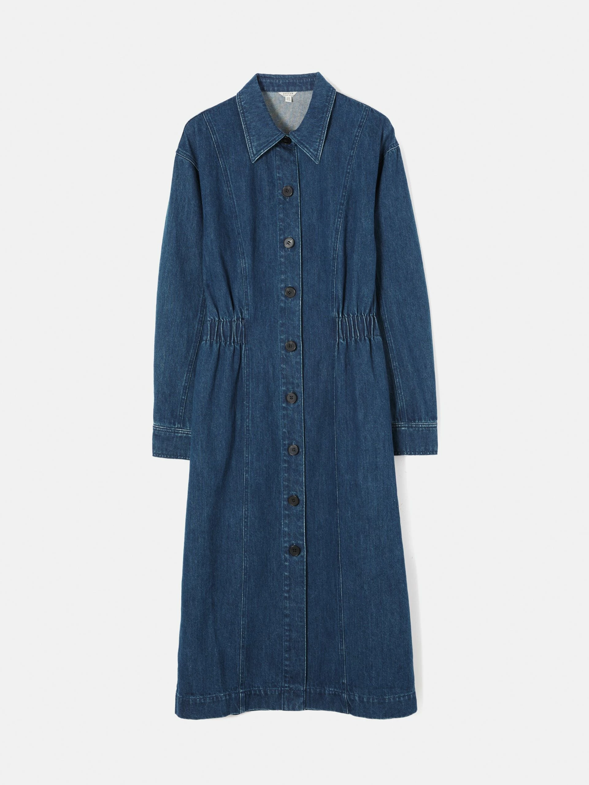 Defining modern classic, this versatile shirt dress is cut from soft and structured, pure cotton denim. A horn button-through front and elasticated waist channel provides the ultimate easy fit. Features side pockets and buttoned cuffs. The perfect everyday dress, or style it with the buttons unfastened as a longline jacket.