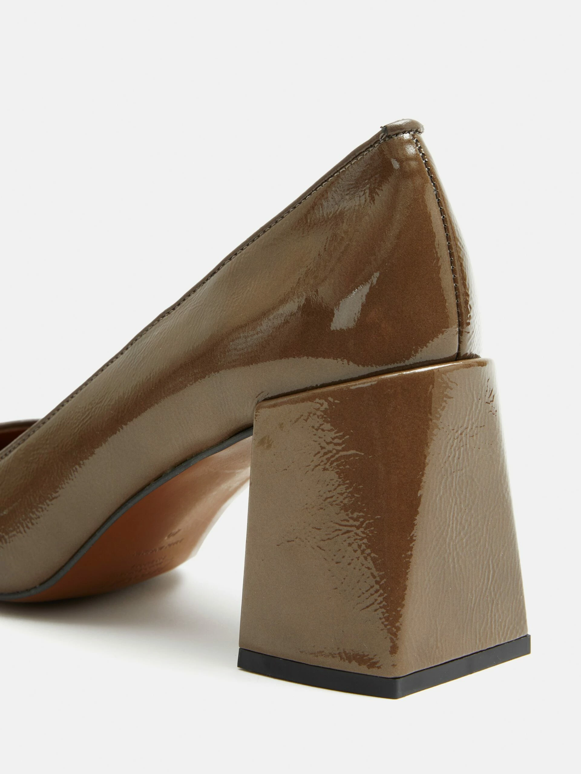 Our versatile Isabel Court Shoe receives a chic update in mink patent leather. A classic heel that can be worn with dresses, denim or sharp tailoring.