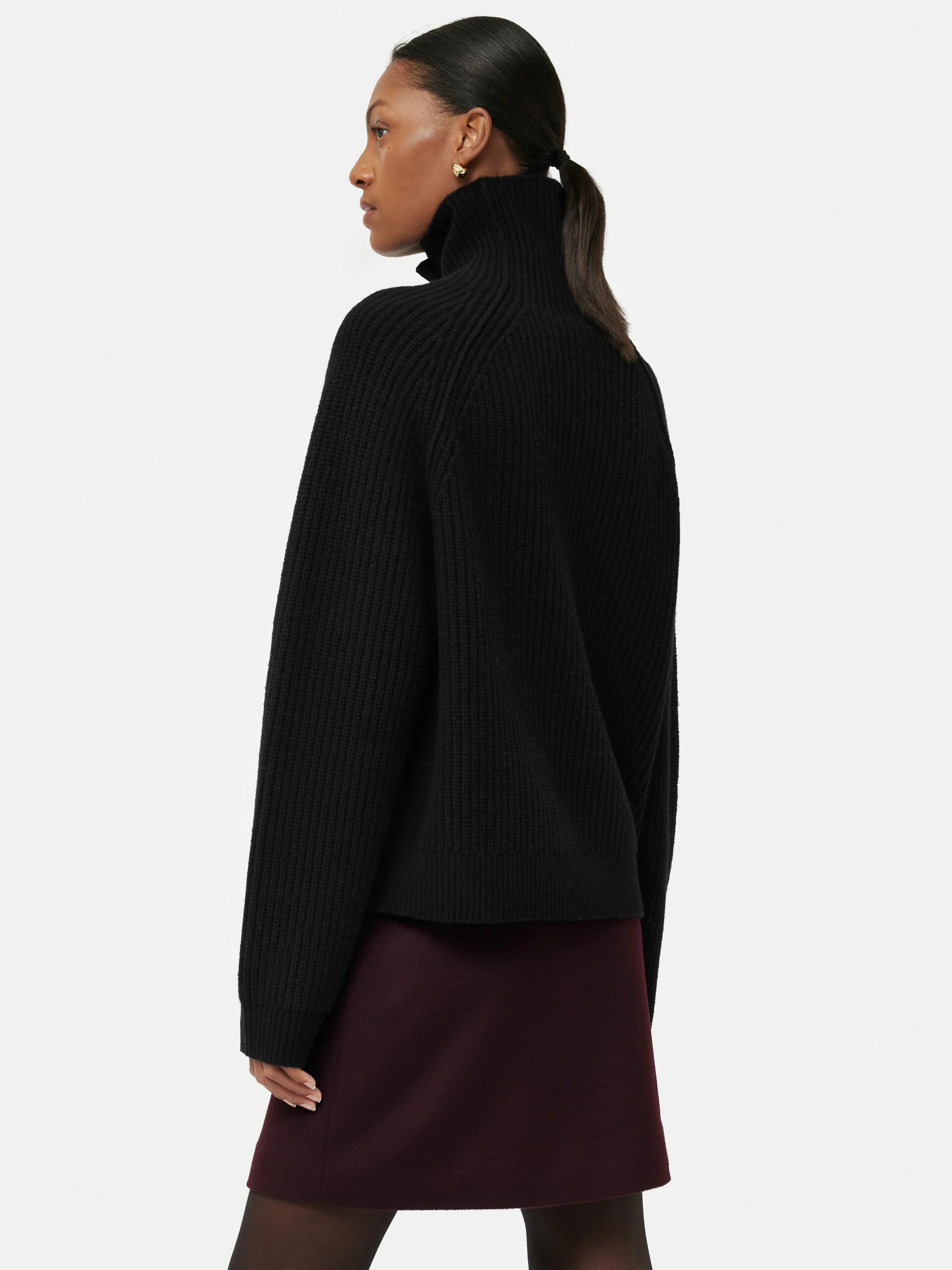 Crafted from responsibly sourced merino wool in a traditional fishermans rib stitch, this jumper will be a constant companion in the new season. Merino wool is softer than other types of wool?because of its?extra fine fibres that feel comfortable against the skin.?Slouchy silhouette with stylish external seams on the raglan armholes, wear the ribbed turtleneck pulled up under your chin to keep out the cold, or folded down.