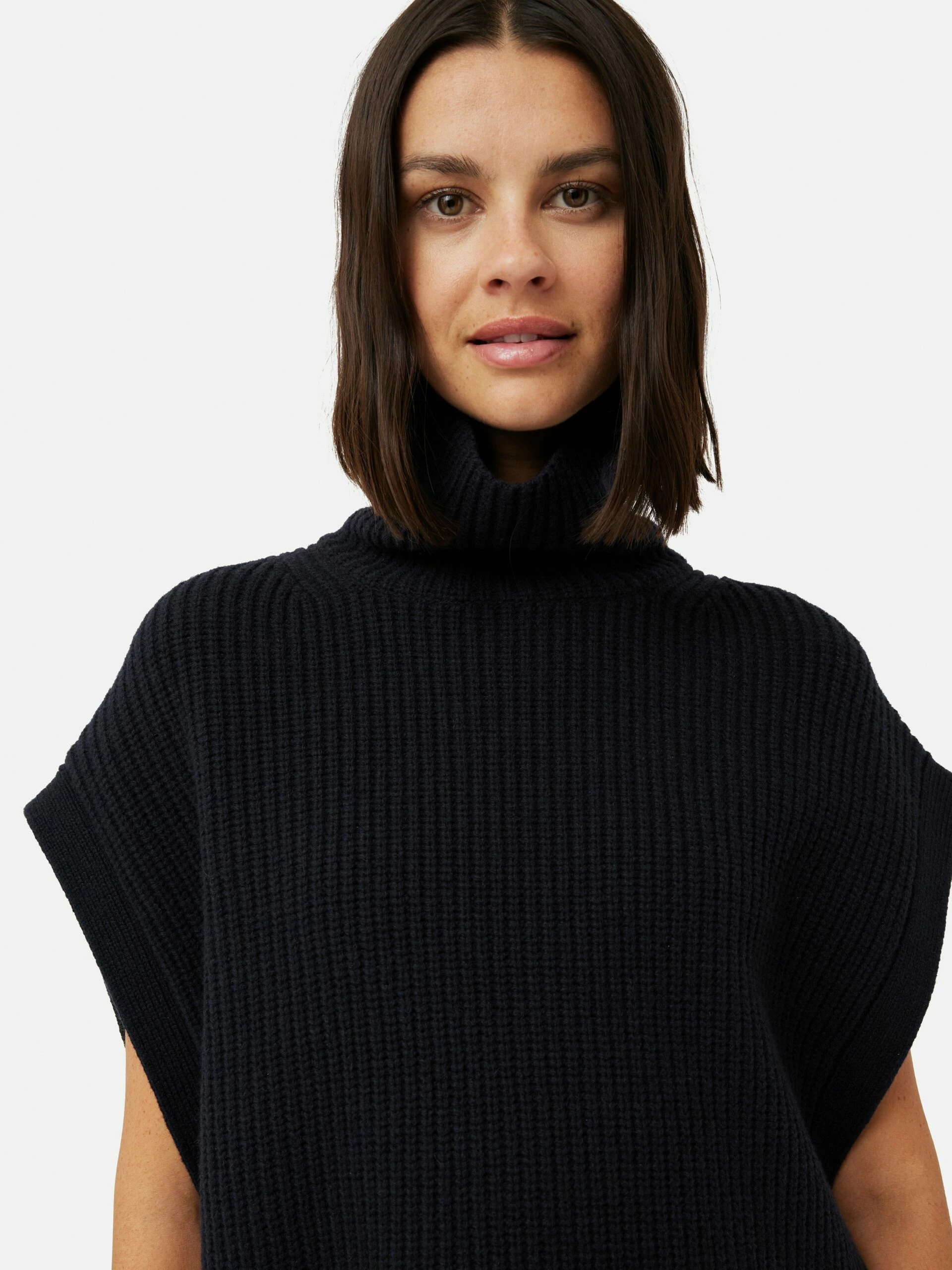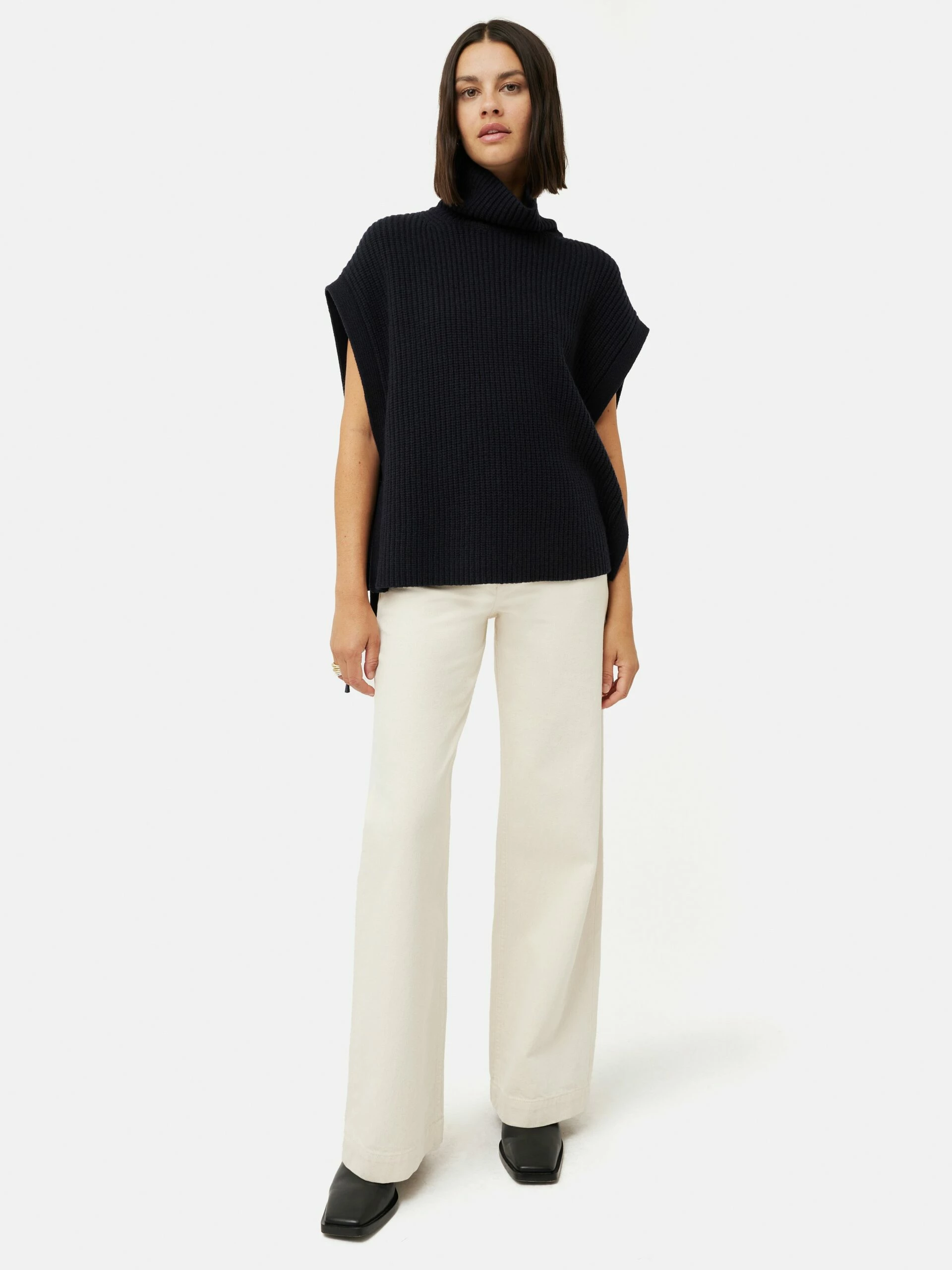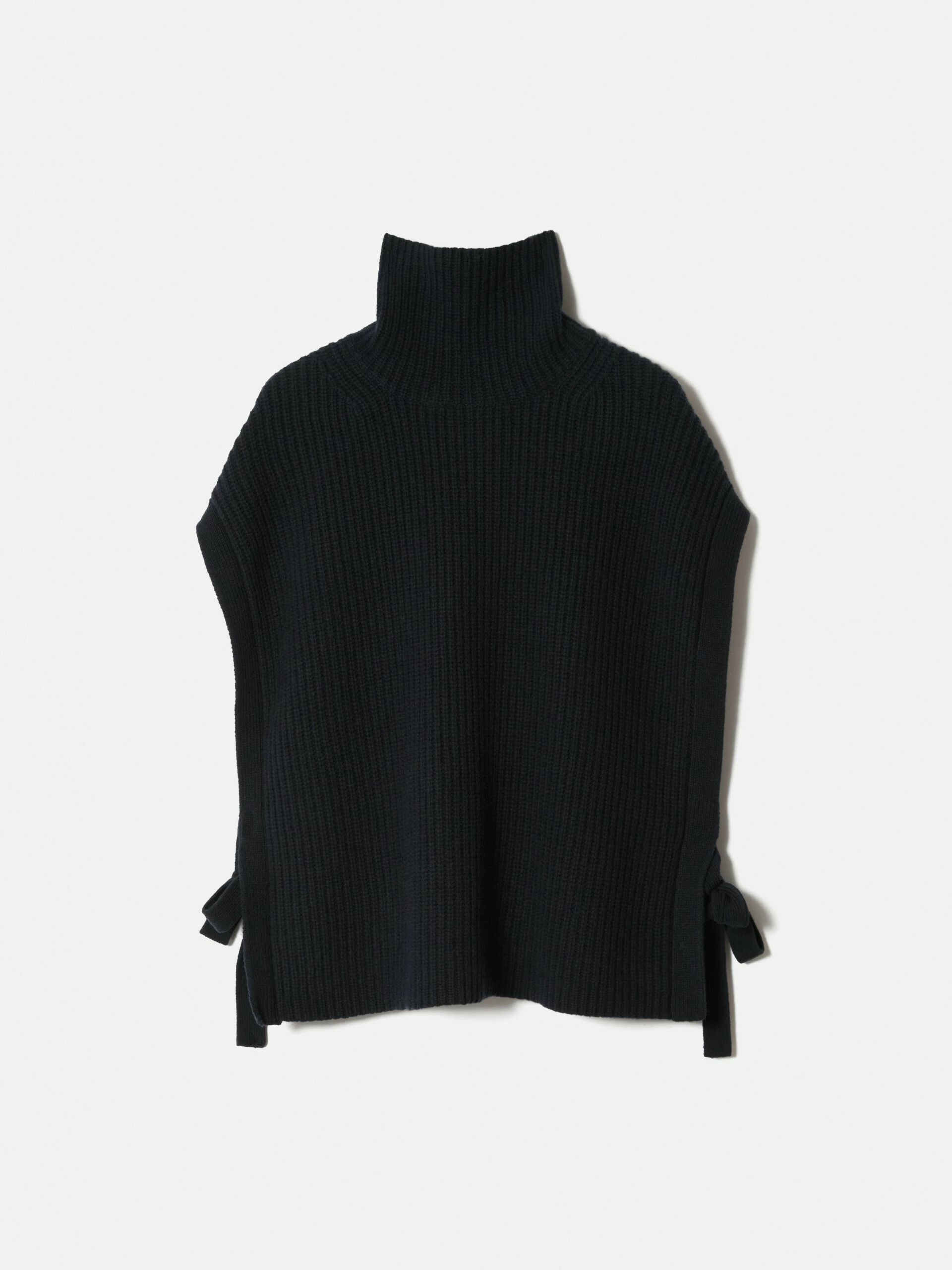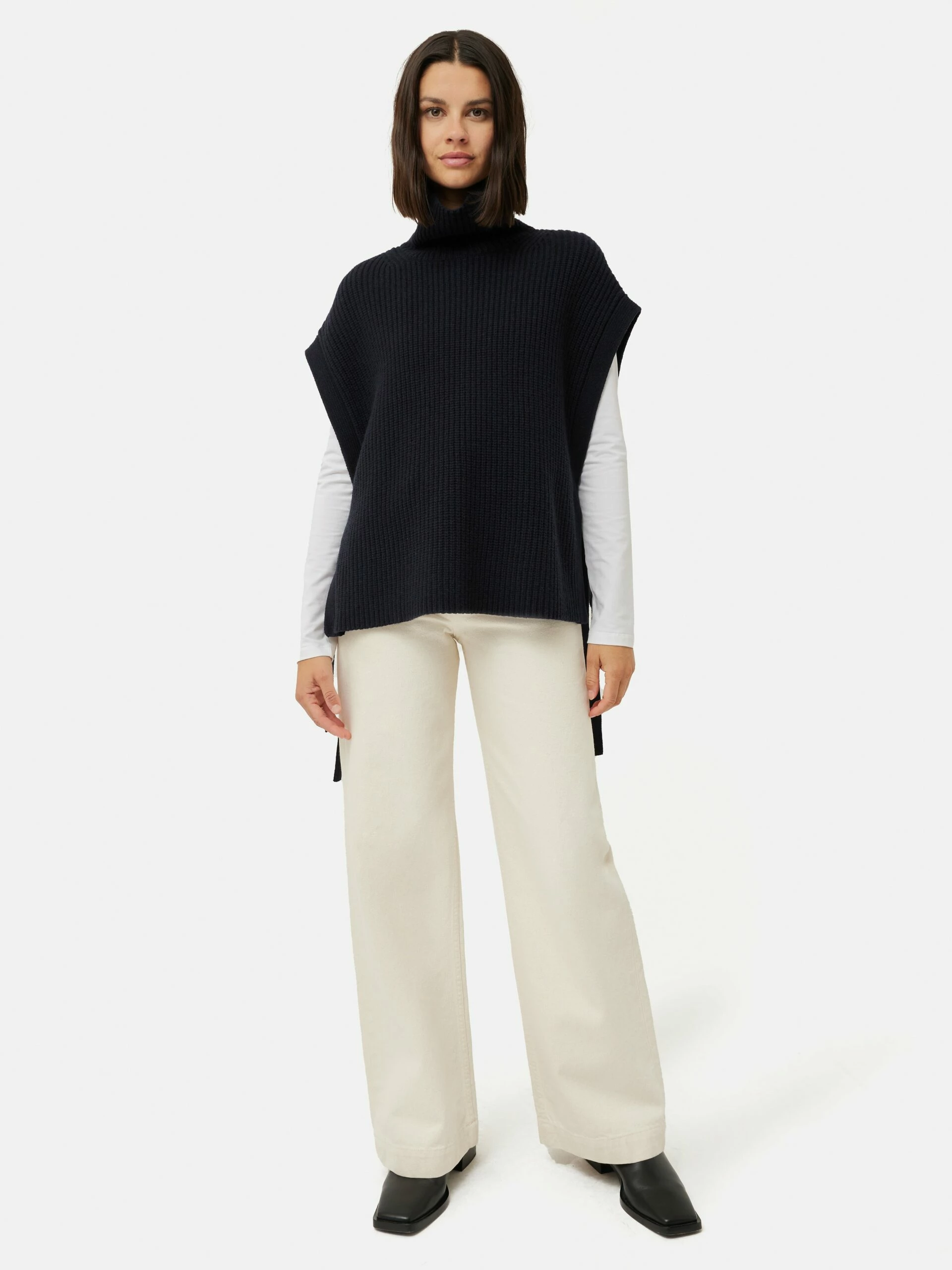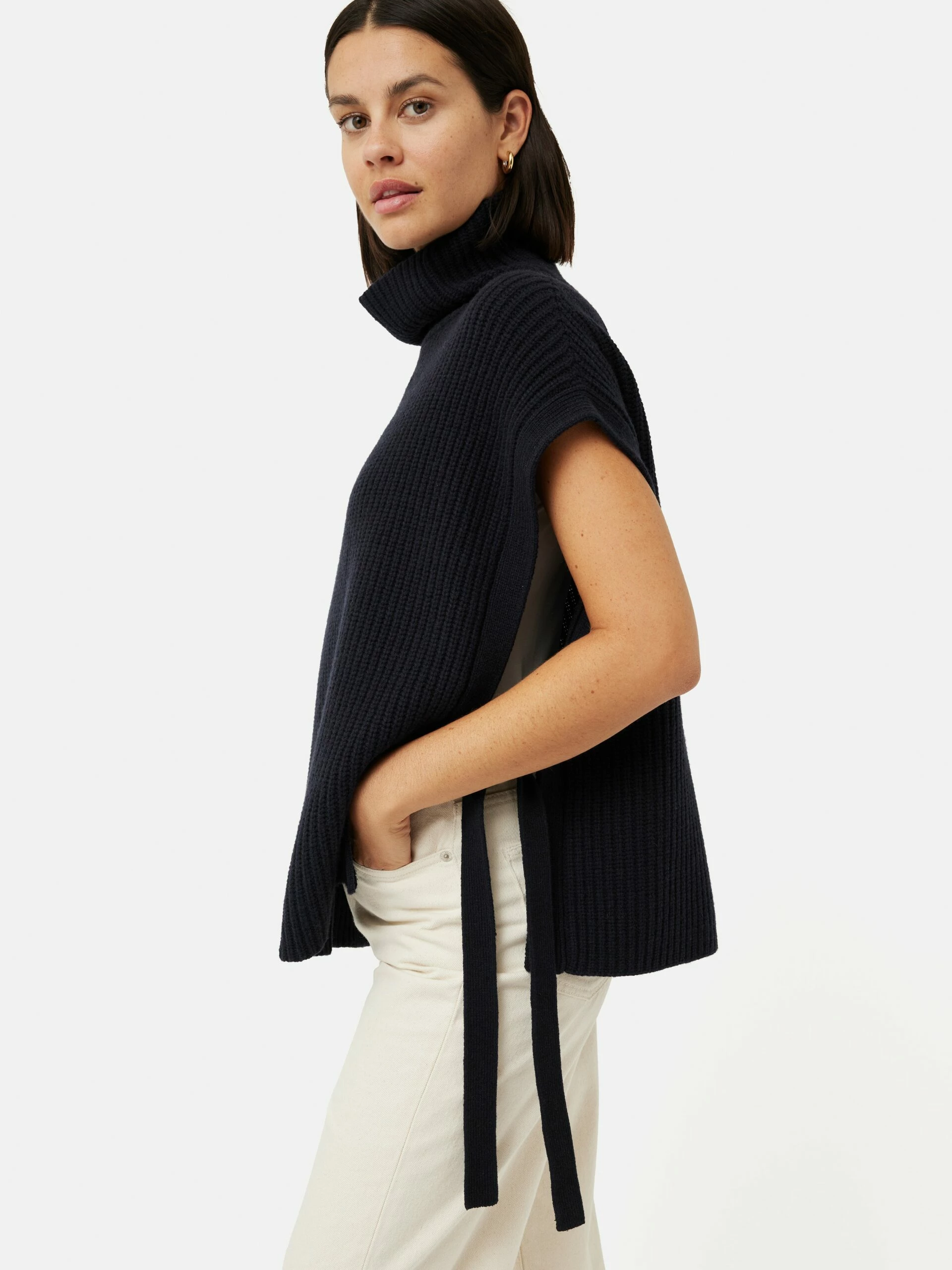 Knitted in a rib construction from pure merino wool, our best-selling tabard is back in new colourways. High necked with adjustable ties at the side. A super versatile layering piece, throw over any dress or top and adjust ties to suit your desired fit.