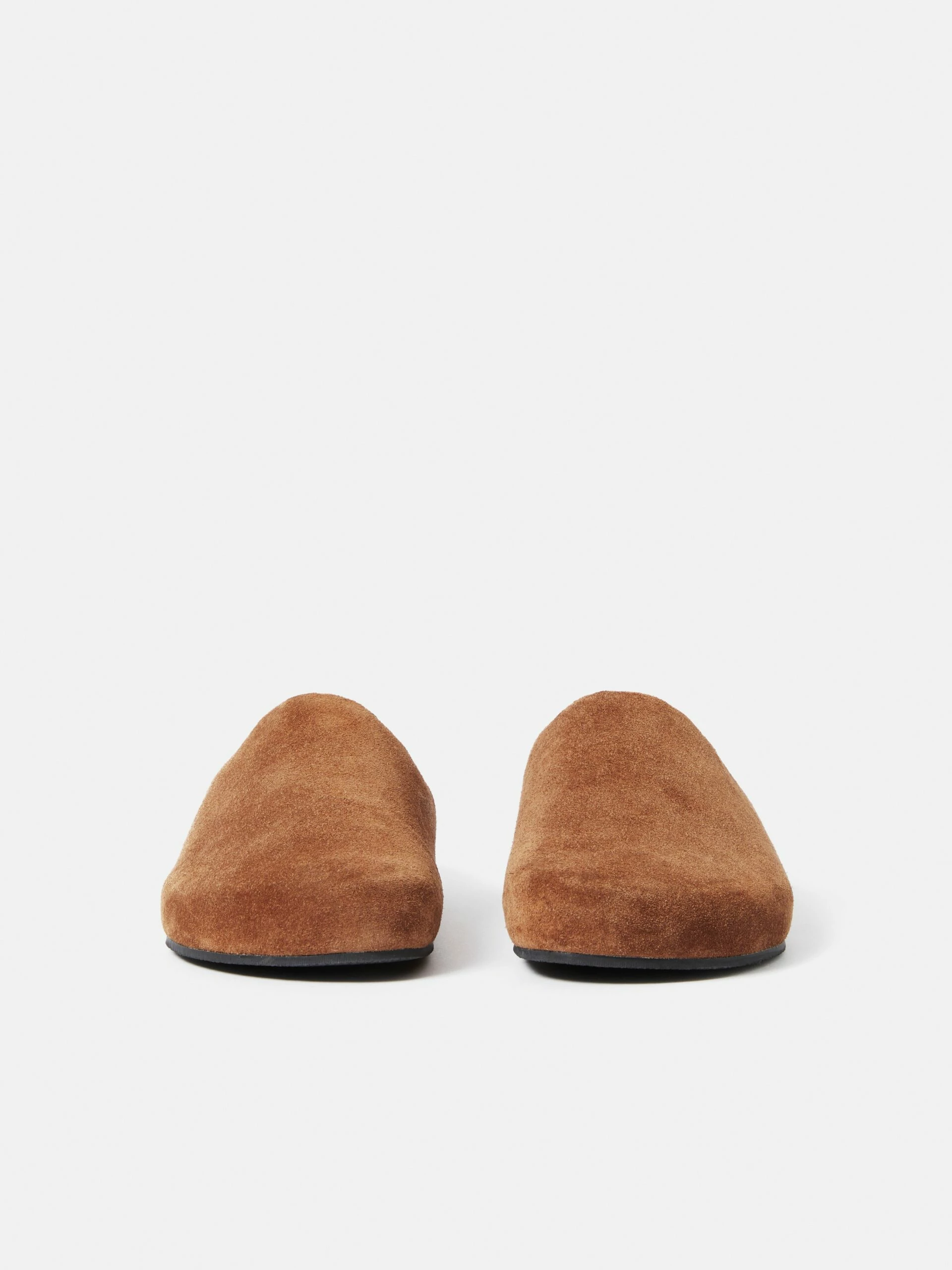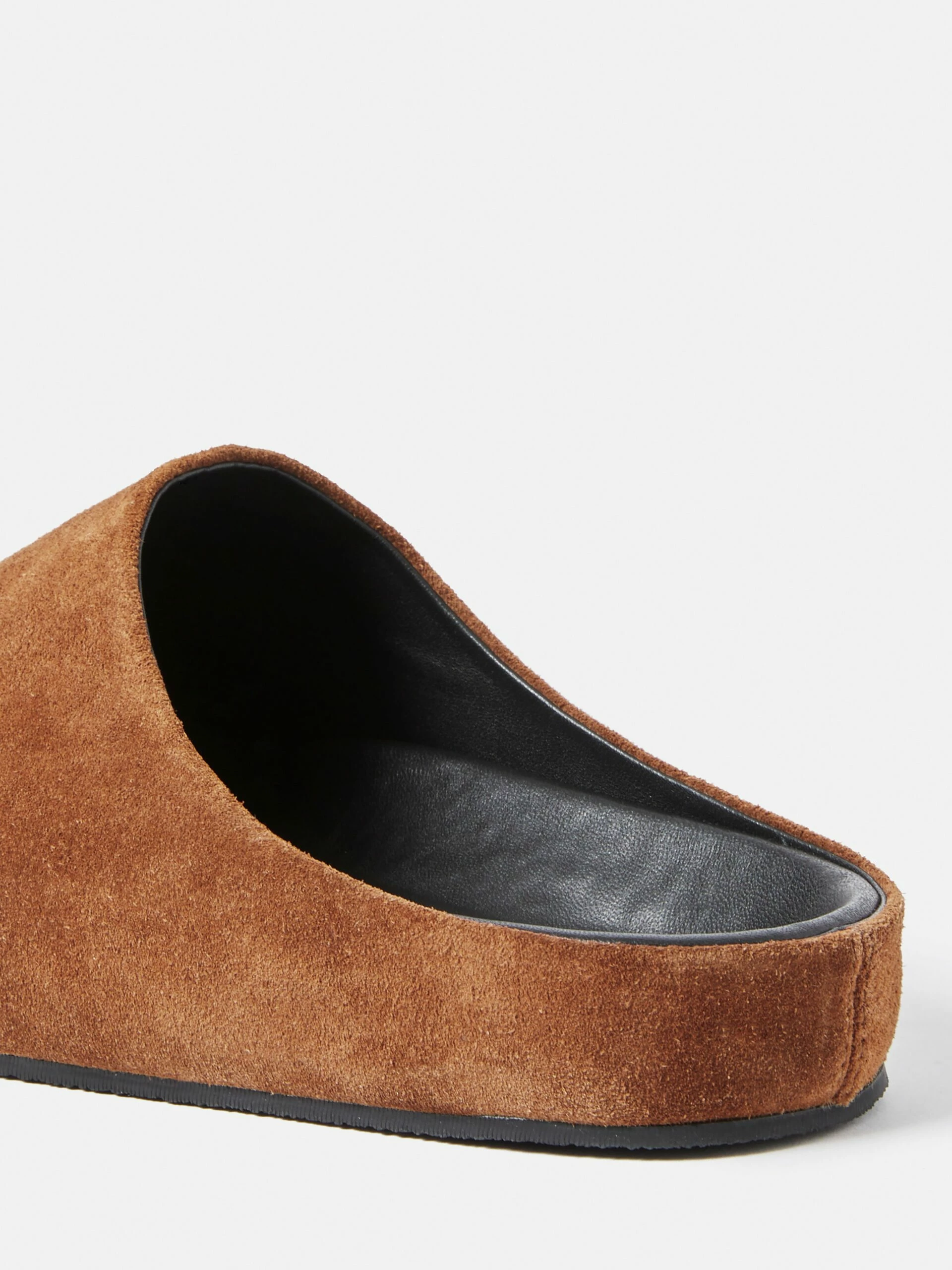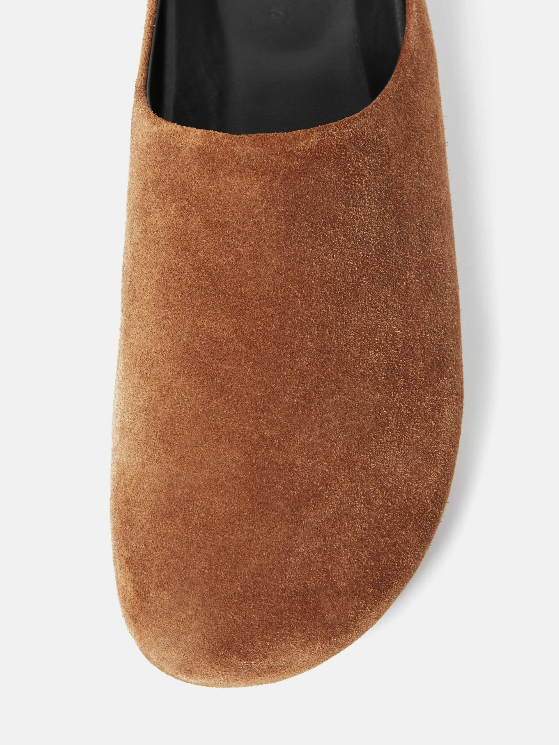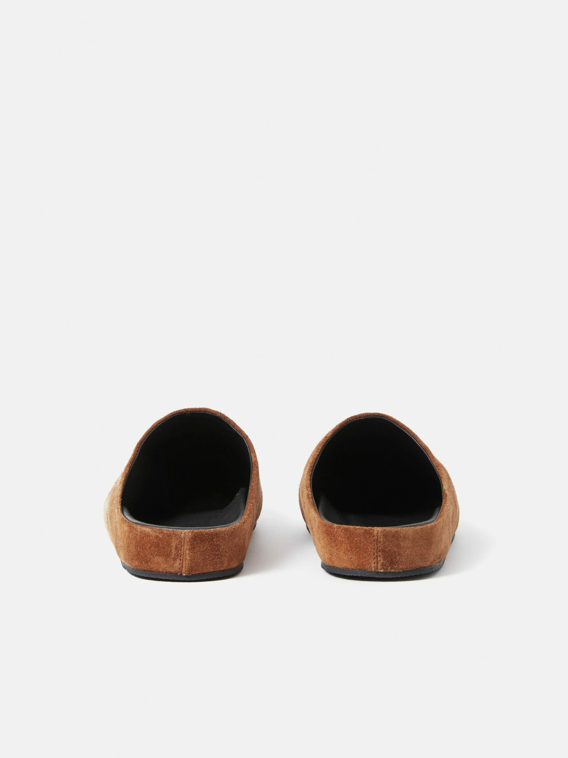 If you?ve been searching for a stylish yet comfortable shoe, look no further than our Northam Mule. Updated for autumn in a dark tan suede, featuring a molded footbed sole for extra comfort you?ll be wearing these slip on shoes all season long.